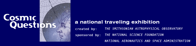 The following educational resources were produced by the Museum of Science, Boston, to accompany the exhibition. Ongoing support for the use of these products and programs at host venues on the Cosmic Questions tour is provided by the NASA-Smithsonian Education Forum on the Structure and Evolution of the Universe.