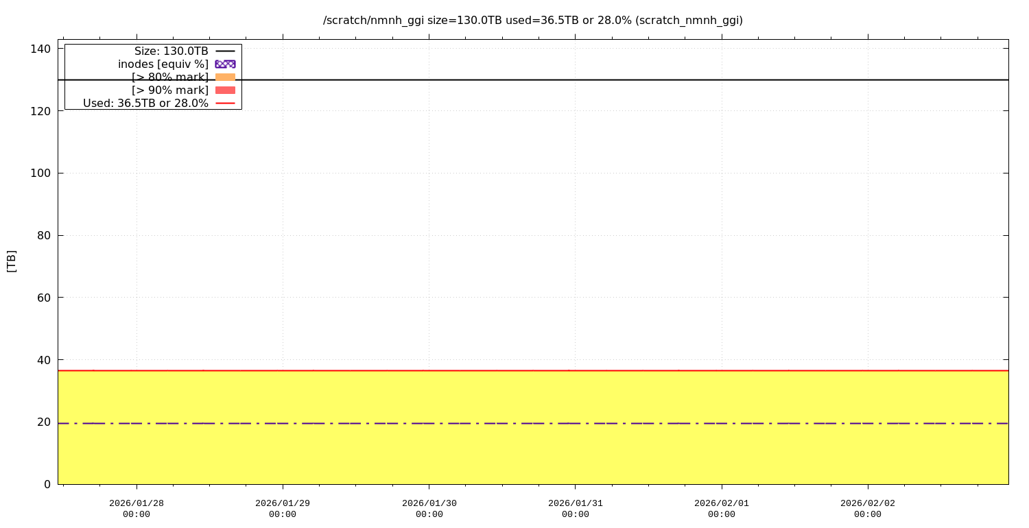 The purple dotted lines shows the equivalent %(inodes) used.