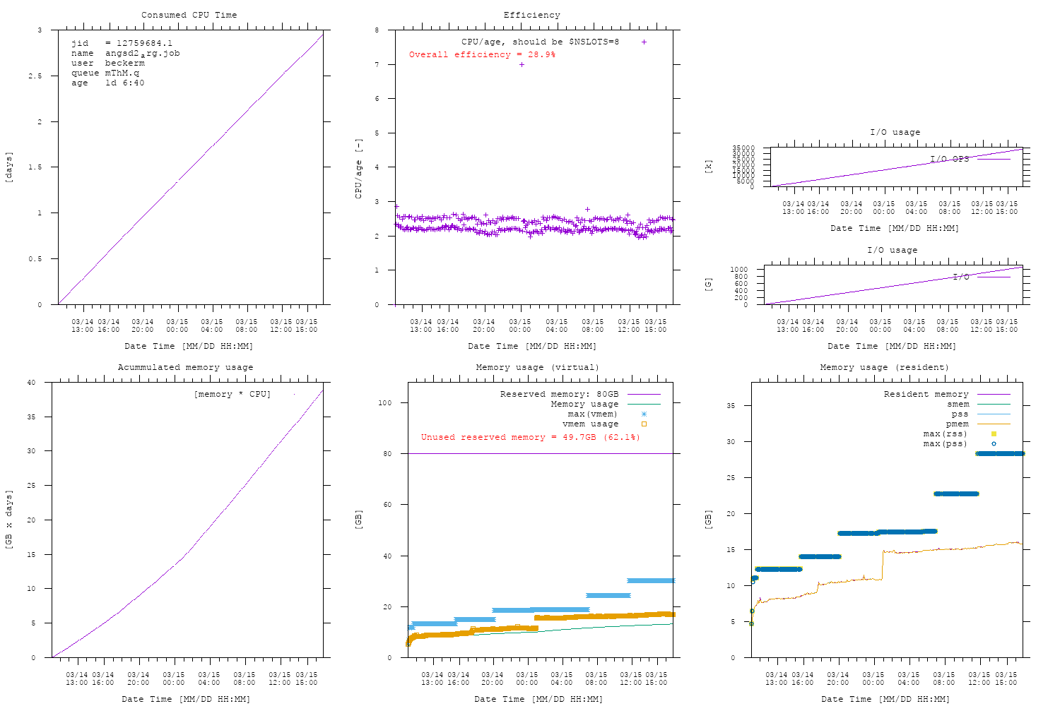jobID.tID jobName user queue - mem_res max(vmem) - vmem avgmem cpu age eff. nslots